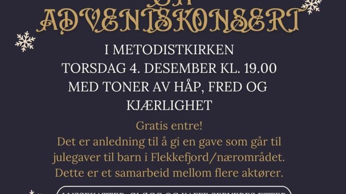 Torsdag 4. desember er du hjertelig velkommen til en flott adventskonsert i Metodistkirken.